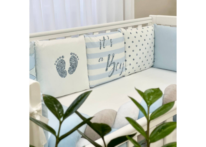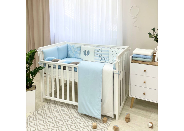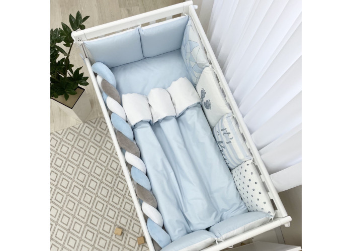 Комплект постельного белья 6 предметов (бортики, одеяло, подушка, пододеяльник, наволочка, простыня), 100% хлопок.