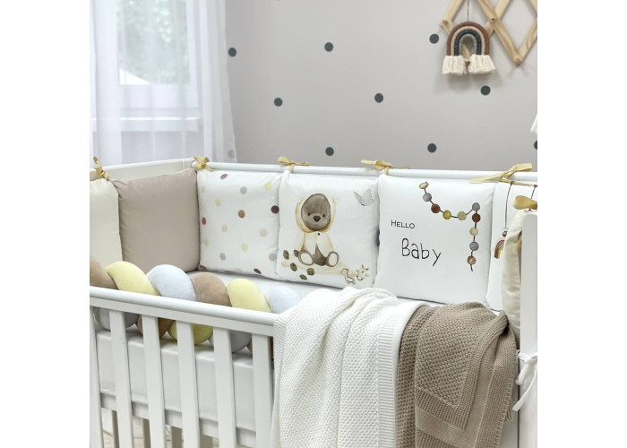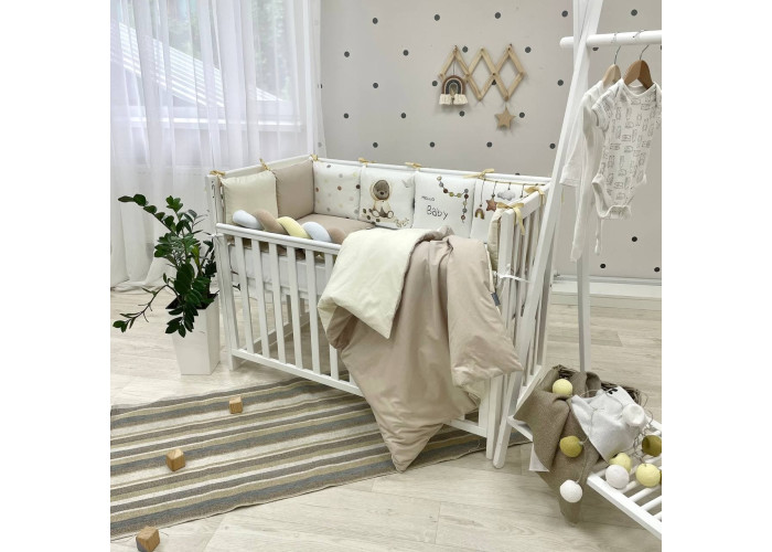 Комплект постельного белья 6 предметов (бортики, одеяло, подушка, пододеяльник, наволочка, простыня), 100% хлопок.