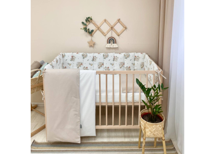 Комплект постельного белья 6 предметов (бортики, одеяло, подушка, пододеяльник, наволочка, простыня), 100% хлопок.