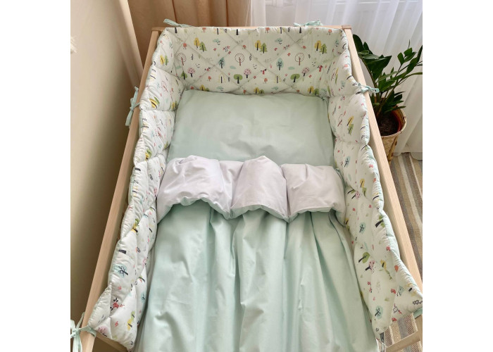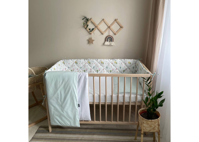 Комплект постельного белья 6 предметов (бортики, одеяло, подушка, пододеяльник, наволочка, простыня), 100% хлопок.