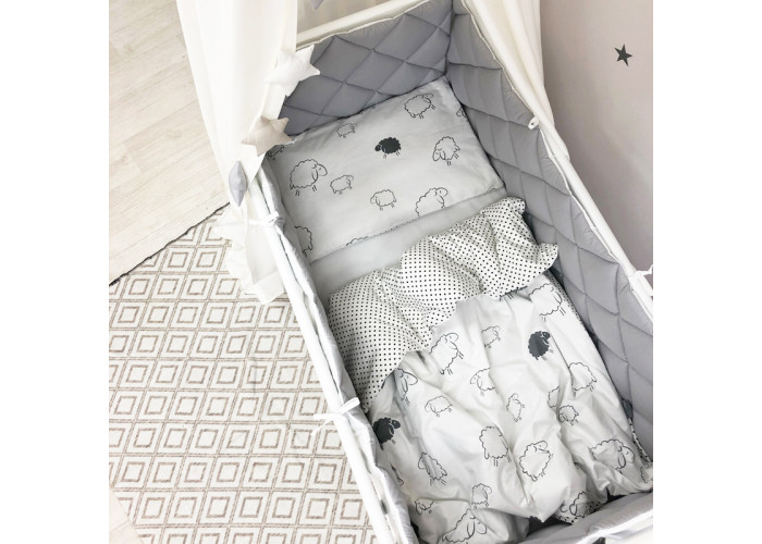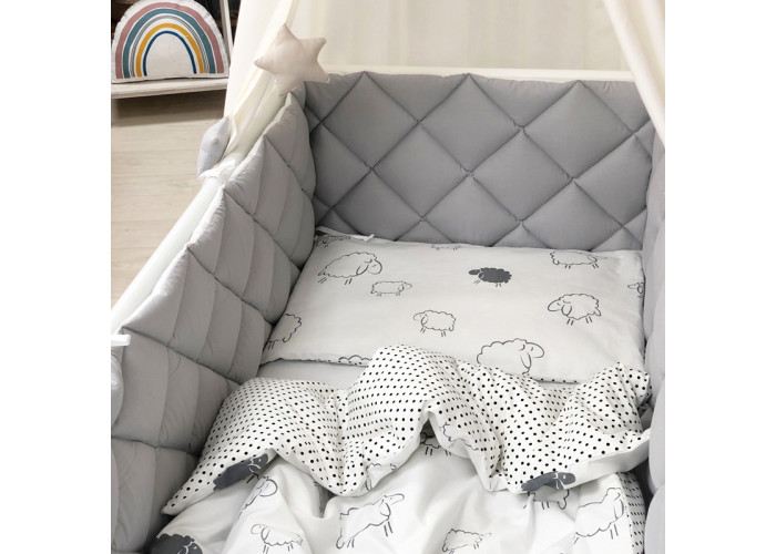 Комплект можно использовать для прямоугольных и овальных кроваток.