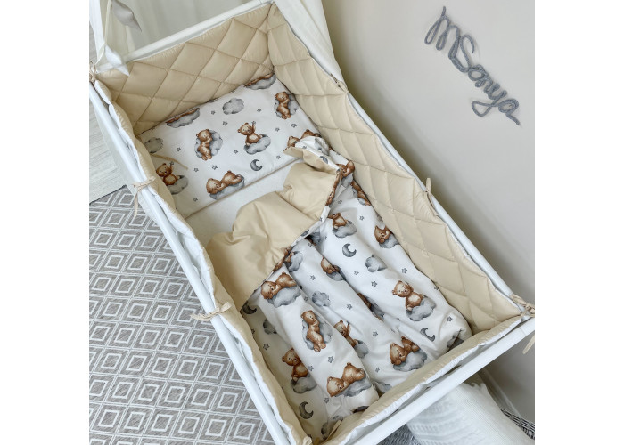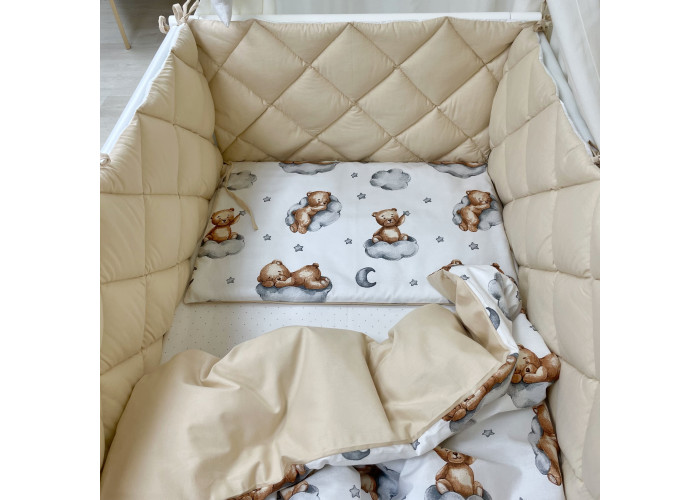 Комплект постельного белья 6 предметов (бортики, одеяло, подушка, пододеяльник, наволочка, простыня), 100% хлопок.