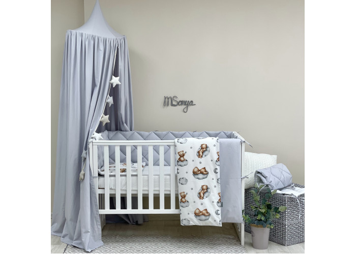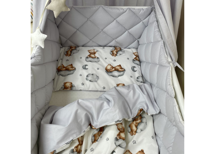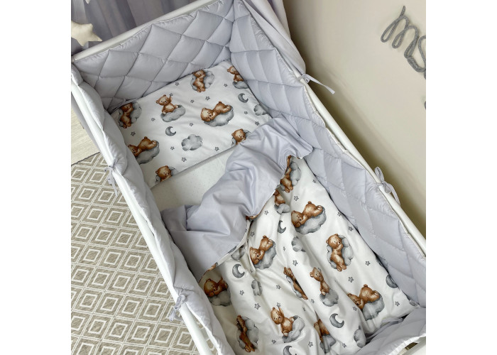 Комплект постельного белья 6 предметов (бортики, одеяло, подушка, пододеяльник, наволочка, простыня), 100% хлопок.