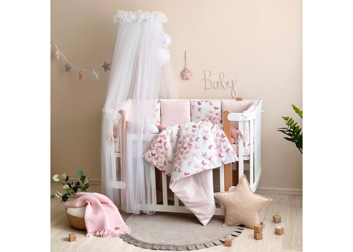 Комплект можно использовать для прямоугольных и овальных кроваток.
