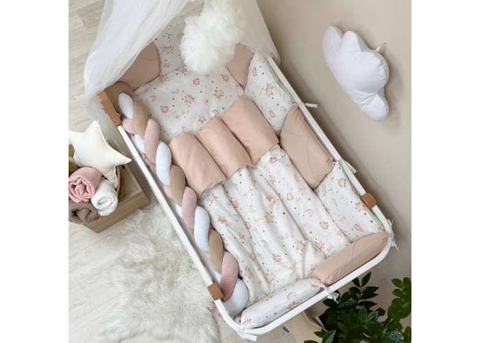 Комплект постельного белья 6 предметов (бортики, одеяло, подушка, пододеяльник, наволочка, простыня), 100% хлопок.