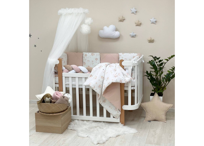 Комплект можно использовать для прямоугольных и овальных кроваток.