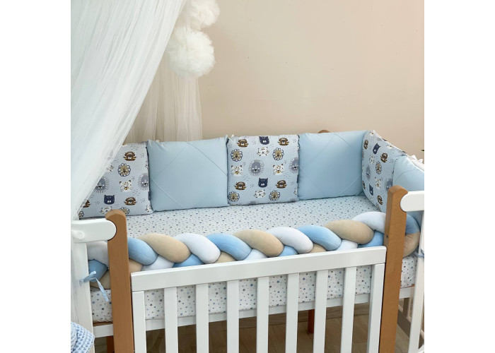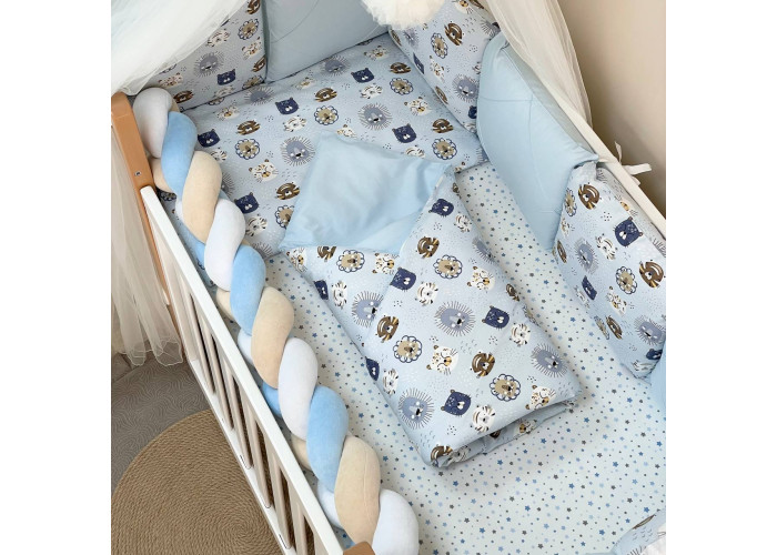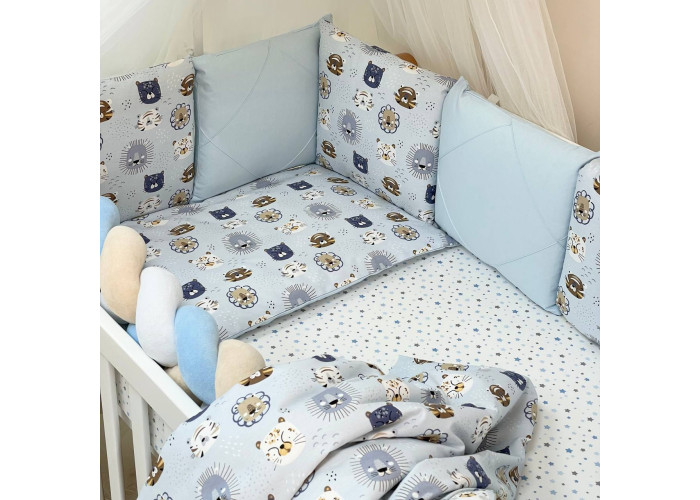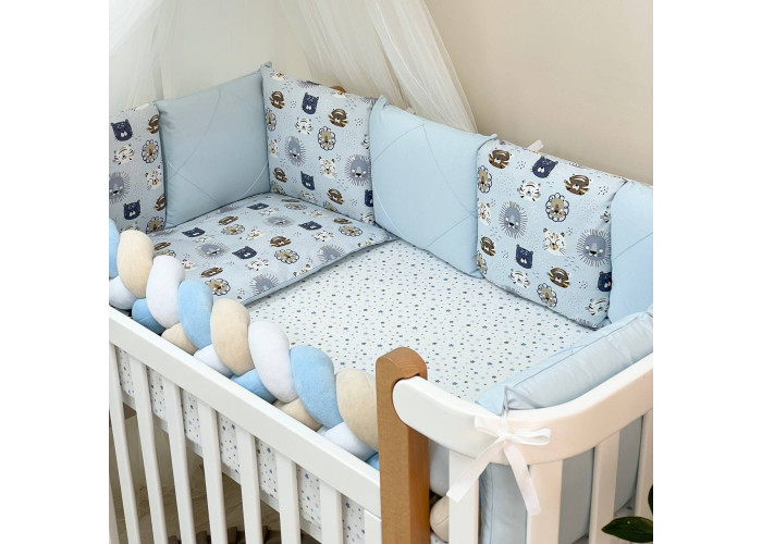 Комплект постельного белья 6 предметов (бортики, одеяло, подушка, пододеяльник, наволочка, простыня), 100% хлопок.