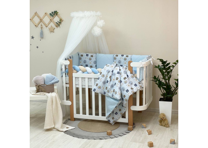 Комплект можно использовать для прямоугольных и овальных кроваток.