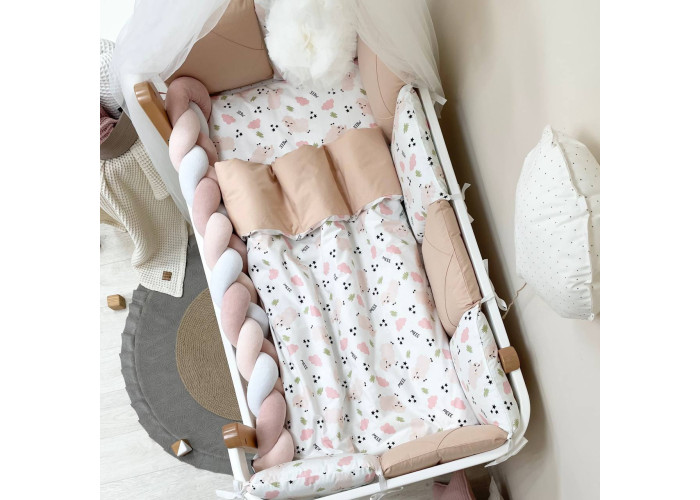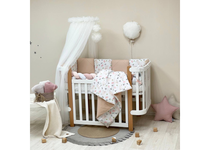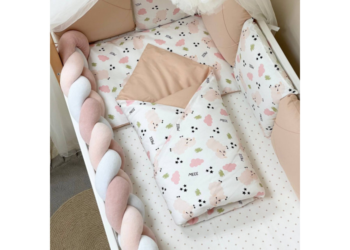 Комплект можно использовать для прямоугольных и овальных кроваток.