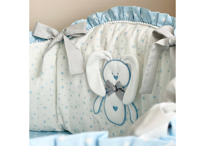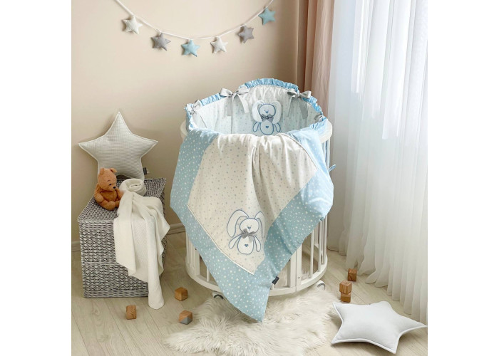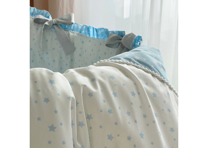 Комплект постельного белья 6 предметов (бортики, одеяло, подушка, пододеяльник, наволочка, простыня), 100% хлопок.