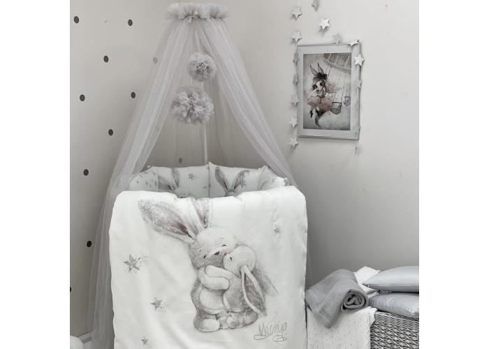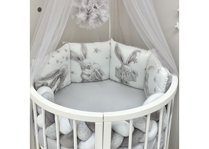 Комплект постельного белья из 6 предметов (бортики, одеяло, подушка, пододеяльник, наволочка, простыня), 100% хлопок.