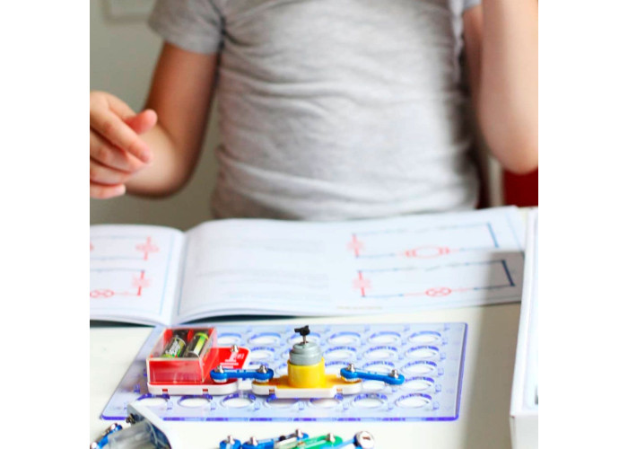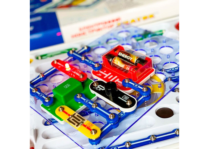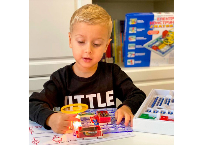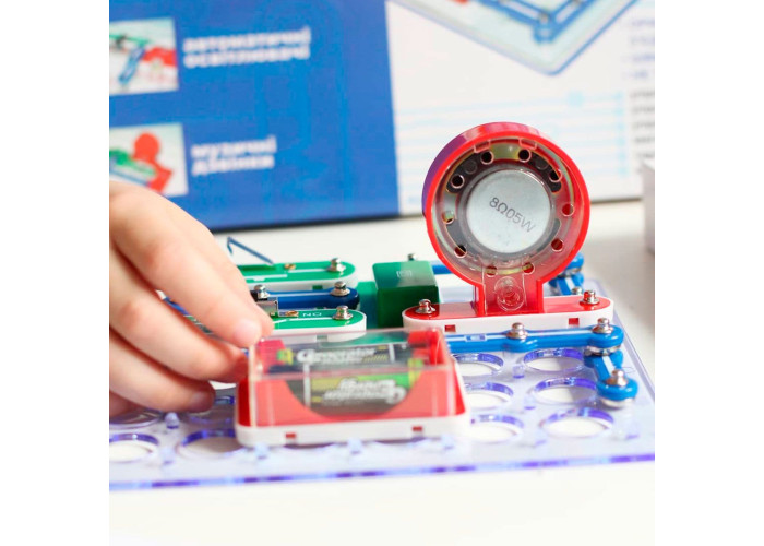До комплекту також входить інструкція, за допомогою якого малюк зможе зібрати 180 електросхем, що дозволяють на практиці освоїти ази управління світлом, звуком, електрикою і водою.