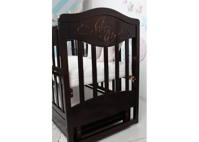 Мы хотим, чтобы ваш малыш спал в комфорте и видел самые приятные сны. Именно поэтому наша кроватка ЛД9 самое то для вас! Она сочетает в себе все характеристики, которые нужны для безопасного и уютного сна. Кровать изготовлена из качественных материалов – натуральный бук, покрытый сертифицированной краской на водной основе. Кроватка оснащена бесшумным маятником, с помощью которого вы с легкостью уложите спать вашего малыша. Также есть возможность фиксации маятника. Кровать имеет прочное дно из ортопедических ламелей, которые в свою очередь помогают позаботиться об осанке вашего малыша и правильном развитии его позвоночника. Для удобного перекладывания ребенка в кроватку имеется откидной бортик. Также в кроватке есть выдвижной ящик, куда можно сложить все самые необходимые детские вещи. Выбирая кроватку ЛД9 вы получаете высочайшее качество, безопасный и комфортабельный сон для вашего ребенка и удобство для вас. А также отличным бонусом ко всему является стильный и приятный дизайн кровати, которая отлично впишется в любой интерьер и станет его изюминкой.