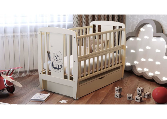 Самые сладкие сны приснятся малышу в кроватке Песик от Дубик-М. Кроватка выполнена из натурального дерева бук - дерево очень прочное и выносливое. Все лакопокрасочные материалы - европейского производства, на водной основе, абсолютно безвредные и безопасные для малыша и родителей. Кроватка оснащена маятниковым механизмом укачивания, абсолютно бесшумным, с фиксатором. Так же, обращаем внимание, что шарнир на маятнике выполнен так же из дерева, поэтому он более выносливый, нежели его пластмассовые собратья. Подматрасник имеет 3 положения высоты, так что родители всегда могут подобрать удобное для себя и для малыша. Размеры спального места: 120*60 см. А откидной бортик с фиксаторами поможет с легкостью достать кроху из кроватки. Кроватку можно использовать как приставную к родительской, что облегчит ночные пробуждения мамы и малыша. Кроватка имеет все сертификаты качества и выводы санитарно-эпидемиологической экспертизы, которые подтверждают безопасность ее материалов для здоровья малыша и родителей.