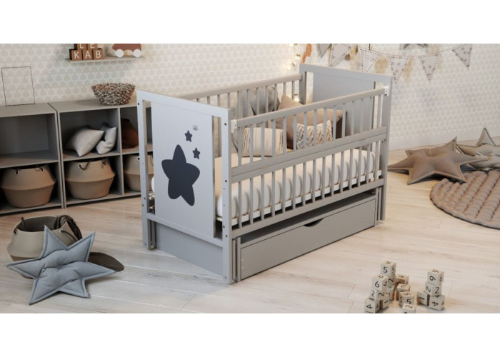 Для самого сладкого сна Вашего малыша предлагаем кроватку Звёздочка. Она выполнена из натурального дерева бук, окрашена безопасной сертифицированной краской на водной основе. С помощью маятника можно укачивать малыша, а откидная боковина добавит удобства в использовании кроватки. Ламели дна кроватки - ортопедические, выполнены из плоских ламелей. Также кроватка укомплектована ящиком закрытого типа, куда можно сложить самые необходимые вещи крохи. Кроватка имеет сертификат качества и выводы санитарно-эпидемиологической экспертизы о безопасности использования для малыша и родителей. Все продумано до мелочей - для комфорта и здоровья Вашего малыша.