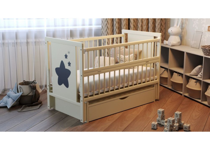 Для самого сладкого сна Вашего малыша предлагаем кроватку Звёздочка. Она выполнена из натурального дерева бук, окрашена безопасной сертифицированной краской на водной основе. С помощью маятника можно укачивать малыша, а откидная боковина добавит удобства в использовании кроватки. Ламели дна кроватки - ортопедические, выполнены из плоских ламелей. Также кроватка укомплектована ящиком закрытого типа, куда можно сложить самые необходимые вещи крохи. Кроватка имеет сертификат качества и выводы санитарно-эпидемиологической экспертизы о безопасности использования для малыша и родителей. Все продумано до мелочей - для комфорта и здоровья Вашего малыша.