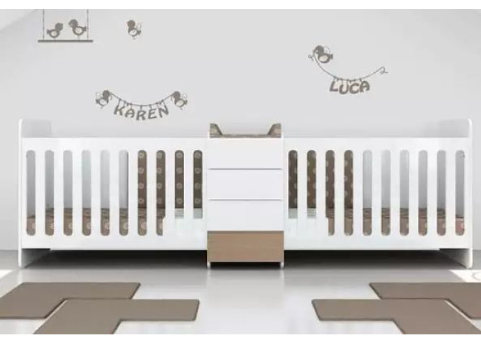 Детская кроватка для двоих новорожденных близнецов с комодом по средине КД 153