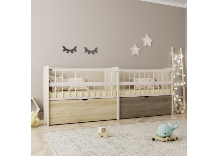 Невозможно описать словами счастья, которое испытывает мама при рождении долгожданного ребенка, а появление на свете близнецов – вдвойне радостное событие. Рационально распределить пространство в комнате, которую будут делить детишки, поможет кроватка для двух новорожденных. Конструкция с двумя спальными местами удобно разместится даже в маленьком помещении. Перегородка между кроватками разделит зоны для отдыха, что позволит младенцам крепко спать, не мешая друг другу. Кроватка для двух новорожденных, стоимость которой значительно меньше, чем двух отдельных люлек, поможет сэкономить затраты на новую мебель в детские комнаты.