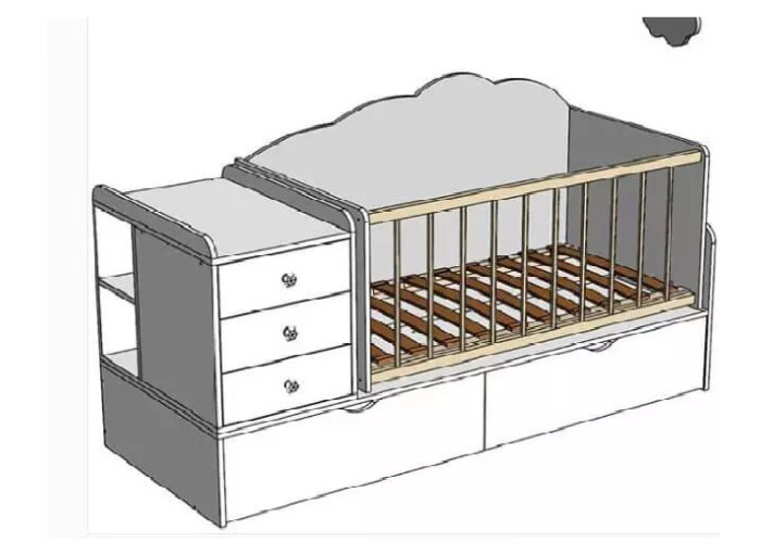 — комод для пеленания трансформируется в прикроватную тумбочку.