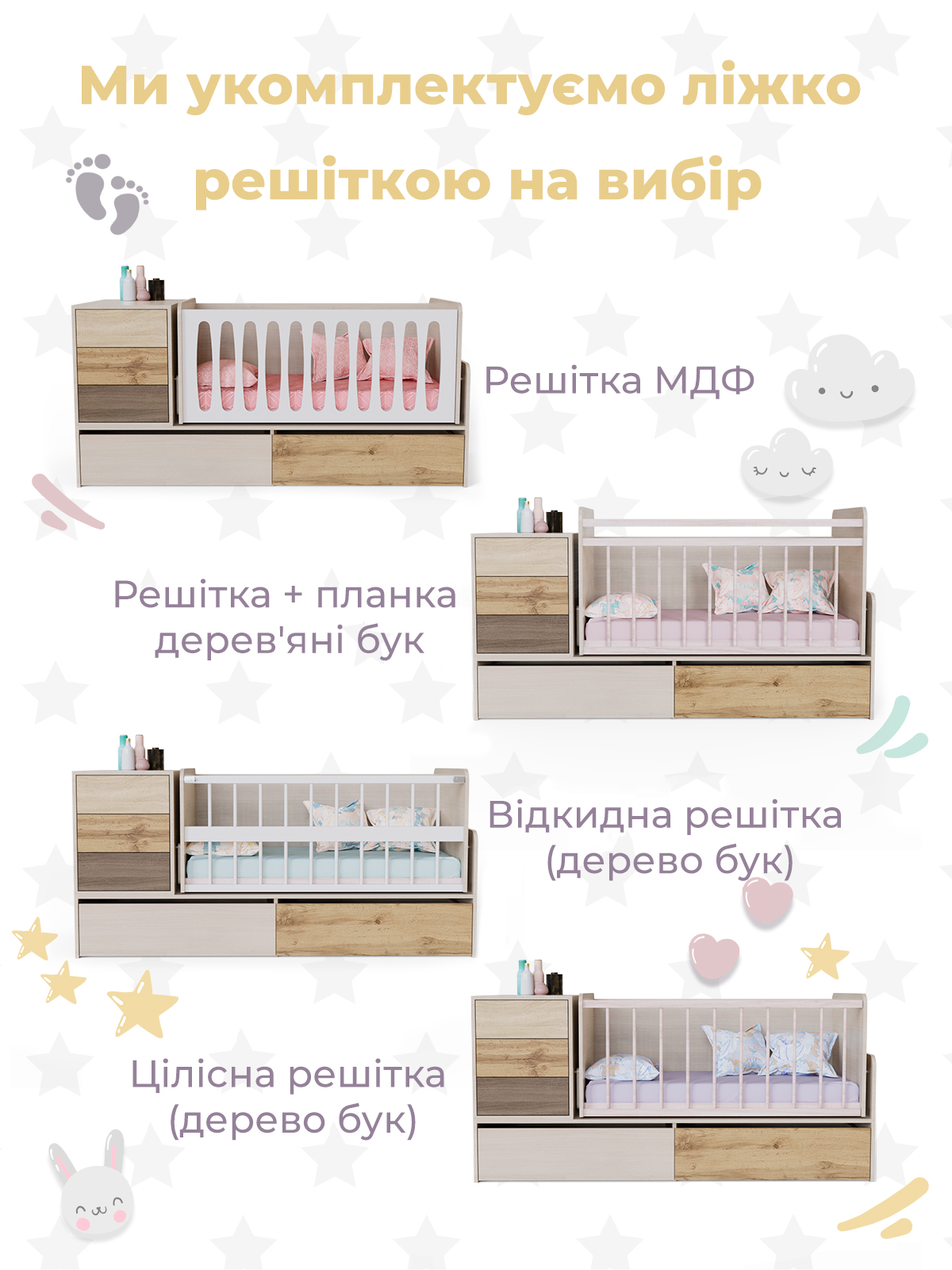 — комод для пеленания трансформируется прикроватную тумбочку;