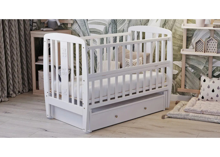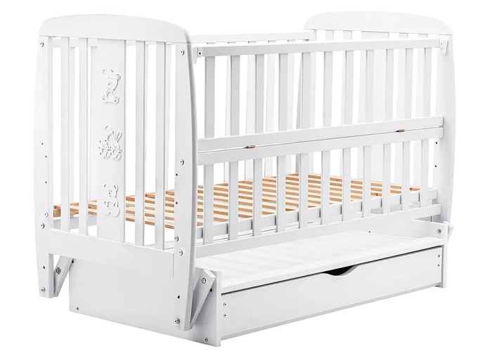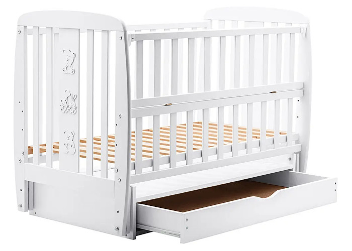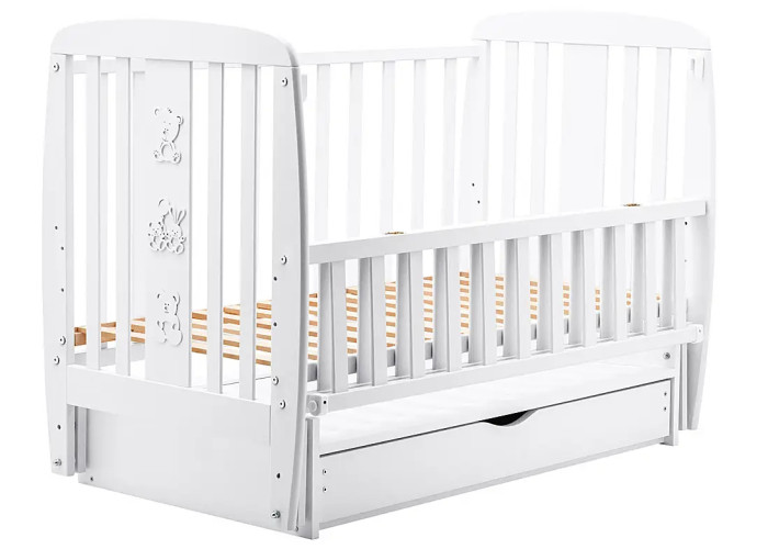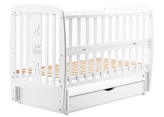 Кровать Babyroom Друзья, маятник, ящик, откидной бок DDMYO-3 бук белый