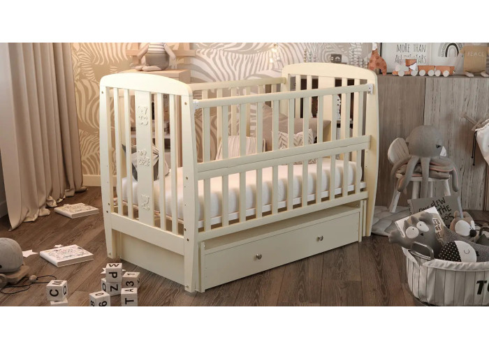 Кровать Babyroom Друзья, маятник, ящик, откидной бок DDMYO-3 бук слоновая кость