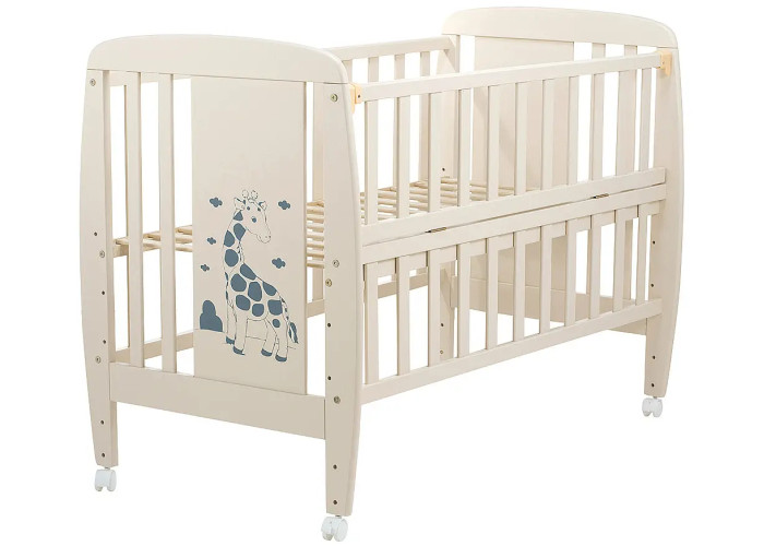 Кровать Babyroom Жирафик откидной бок, колеса DJO-01 бук слоновая кость