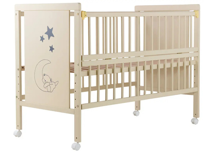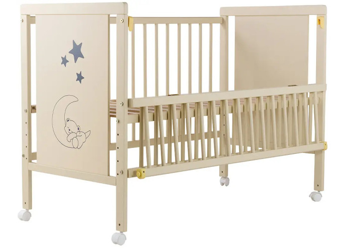 Кровать Babyroom Медвежонок M-01 откидной бок, колеса бук слоновая кость