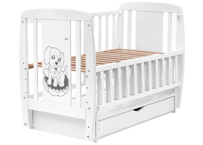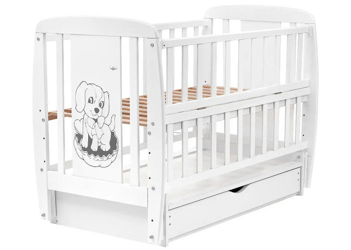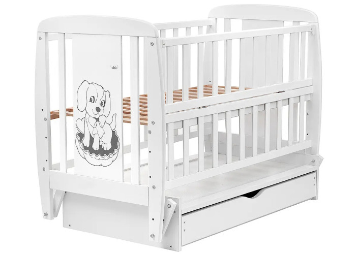 Кровать Babyroom Собачка маятник, ящик, откидной бок DSMYO-3 бук белый