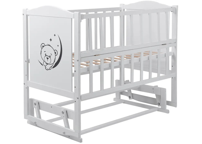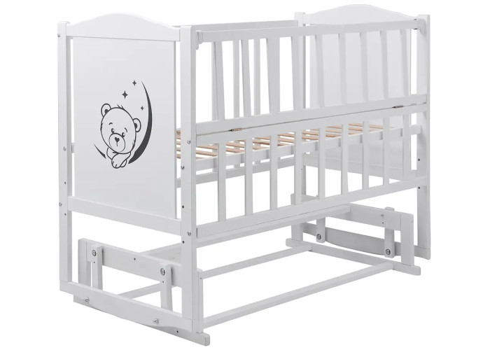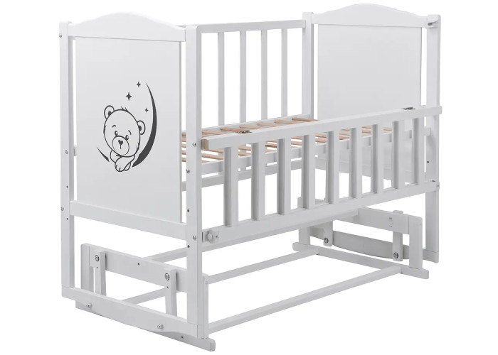 Кровать Babyroom Тедди Т-02 фигурное быльце, маятник, откидной бок белый