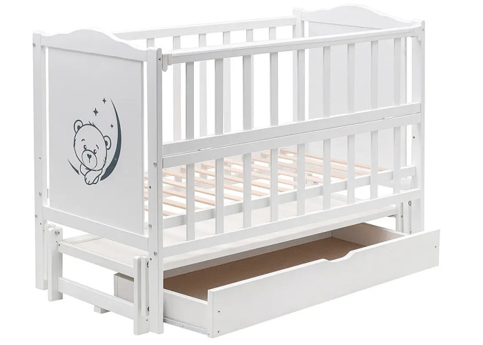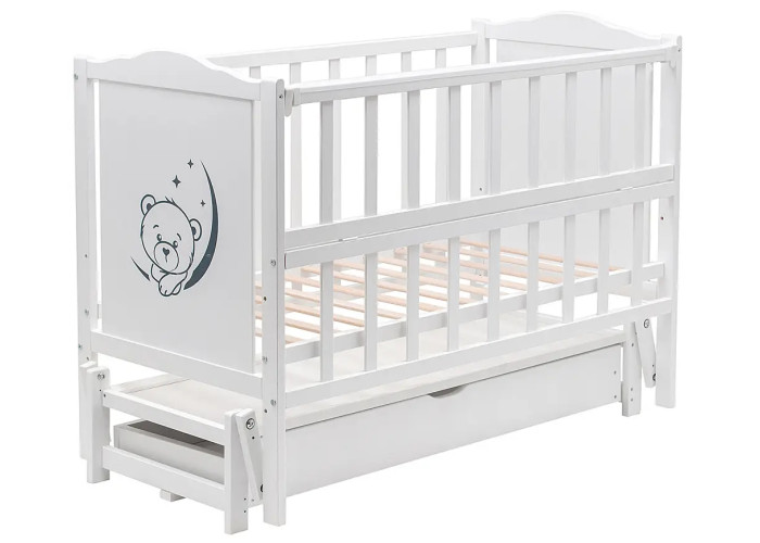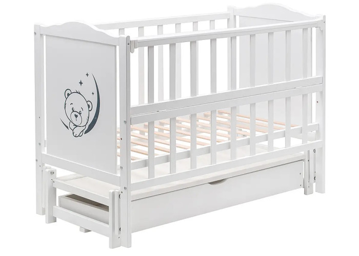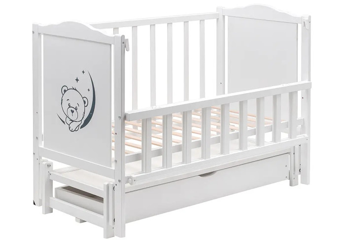 Кровать Babyroom Тедди Т-03 фигурное быльце, маятник продольного качания, ящик, откидной бок белый