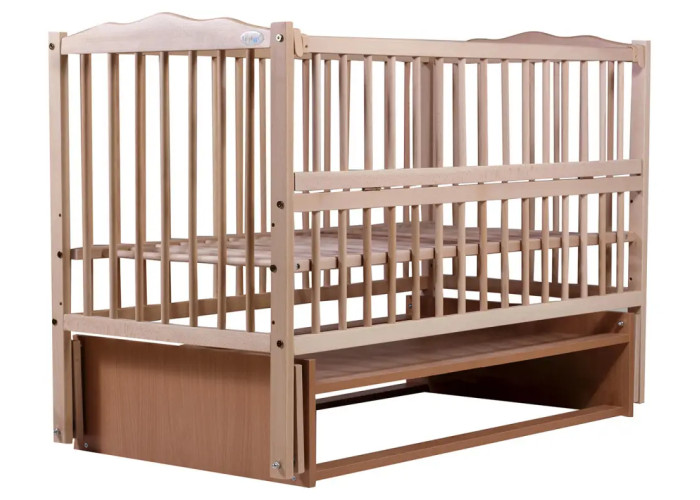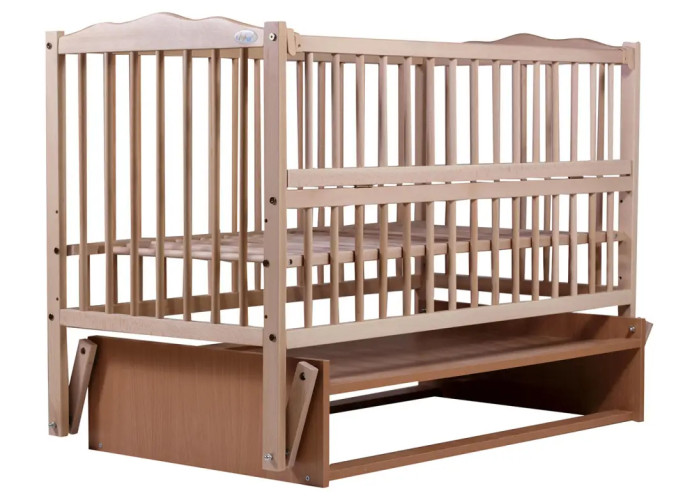 Кроватка гладкая и полностью безопасная для малыша. Расстояние между рельсами не позволяет ребенку застрять между ними в раннем возрасте. Кронштейны маятника изготовлены из прочного материала, когда ребенок подрастет маятниковый механизм, снимается и кровать устанавливается на ножки.