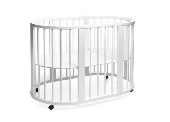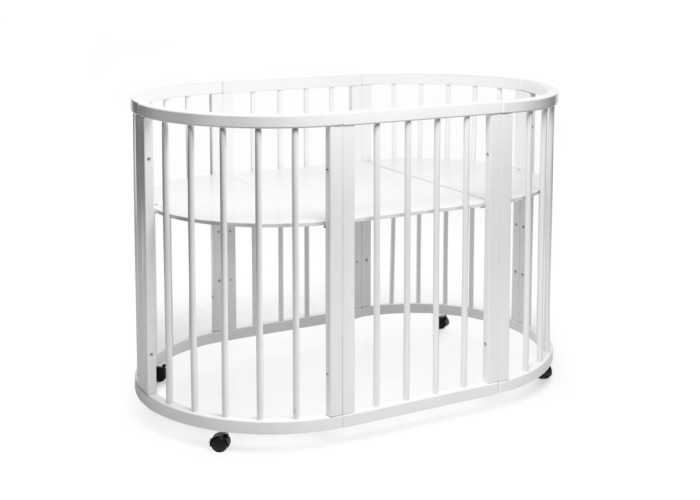 Овальная детская кроватка с маятниковым механизмом – отличный вариант для спального места малыша и стильный предмет в детской комнате. Округлость линий обустроит атмосферу уюта, ласки и тепла. Ультрасученная овальная кроватка в тренде из-за своего удобства и эстетичности. Эта популярность оправдывает бактофункциональность и отсутствие прямых углов.