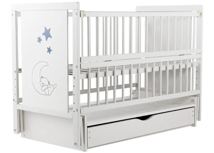 Ліжко Babyroom Ведмедик M-03 маятник, ящик, відкидний бік бук білий
