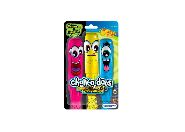 Набор цветных мелков для рисования с держателем (розовый светящ.в темноте, желтый, голубой)