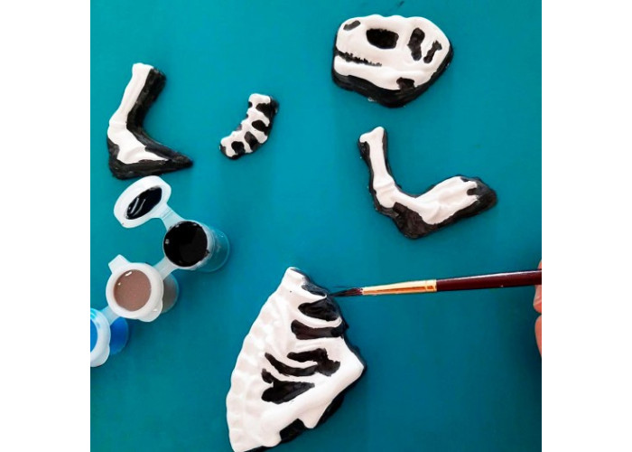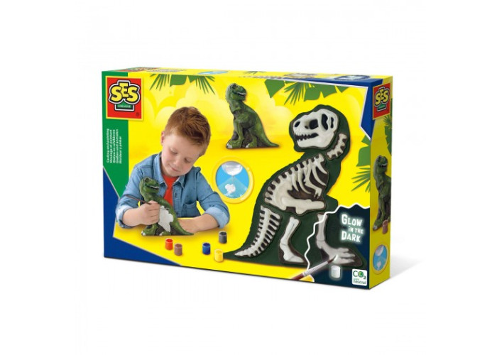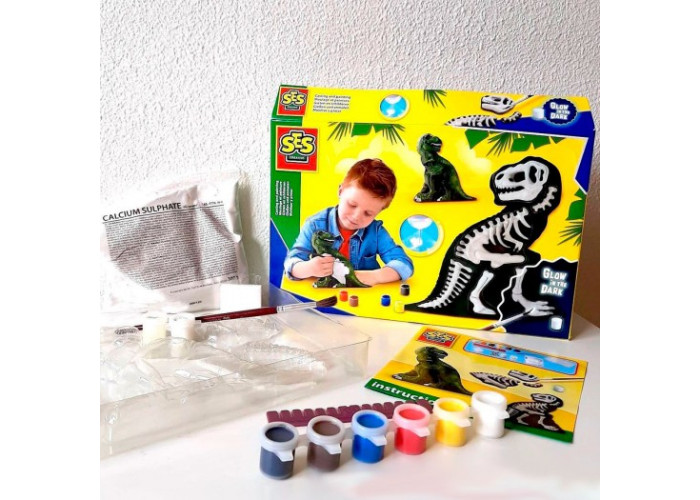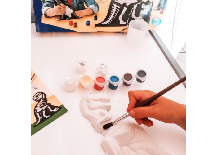 Набор для создания гипсовой фигурки -ТИ-РЕКС СО СКЕЛЕТОМ (гипс,формочка,клей,6 красок,губка,щеточка)