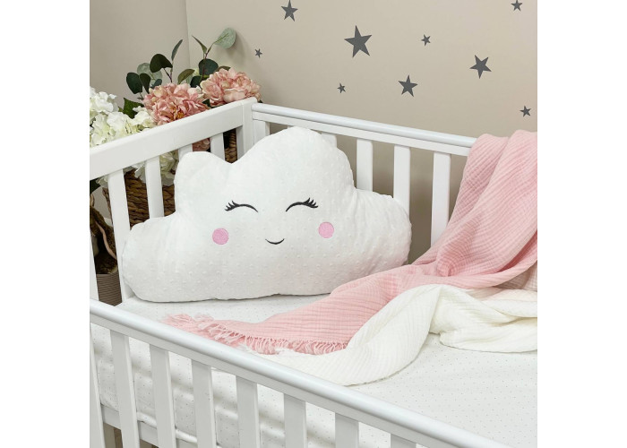 Красивая и оригинальная подушечка в форме облачка для детской кроватки.