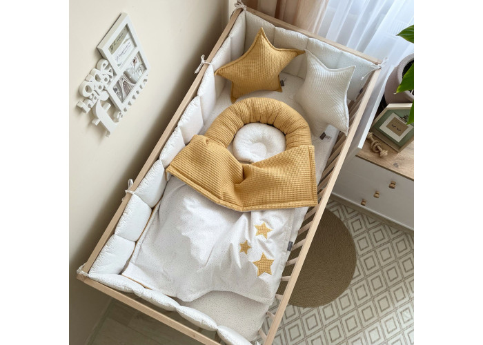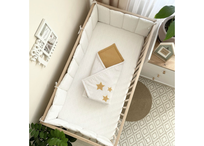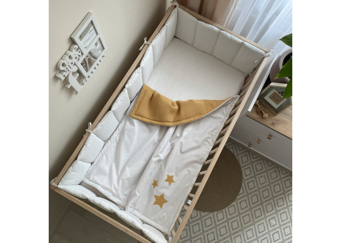 К пледу можно подобрать из коллекции Stars фенс-бортики, кокон, простыню, анатомическую подушку, декоративную подушку "Звездочка" и выйдет полный комплект постельного белья в одном стиле.