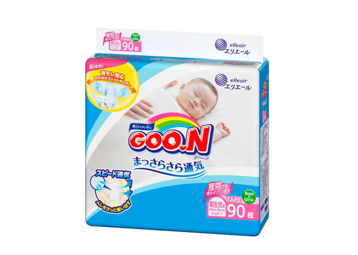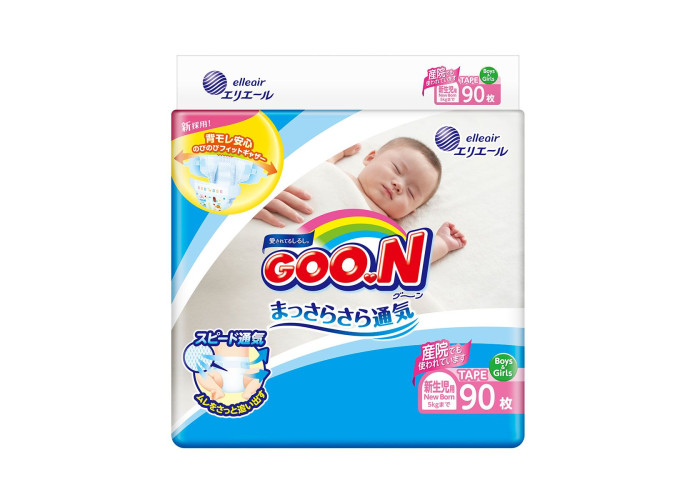 Подгузники GOO.N для новорожденных до 5 кг (размер SS, на липучках, унисекс, 90 шт)