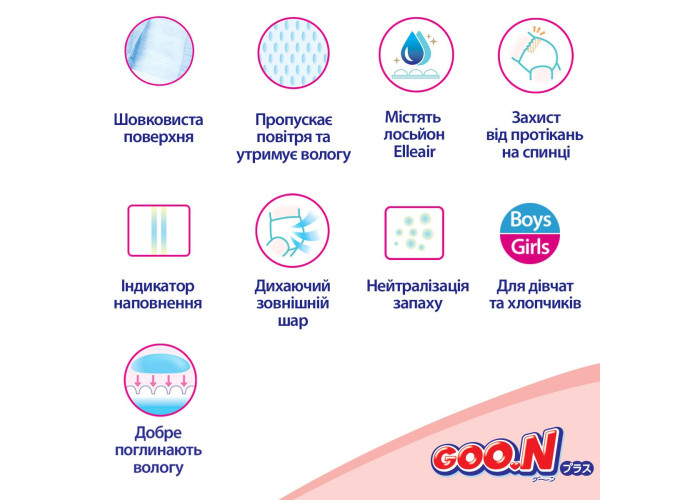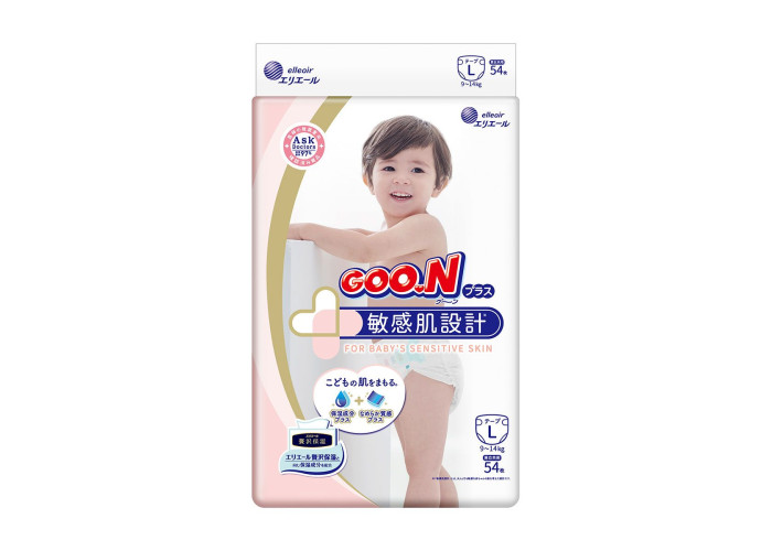 Подгузники GOO.N PLUS для детей 9-14 кг (размер L, на липучках, унисекс, 54 шт)