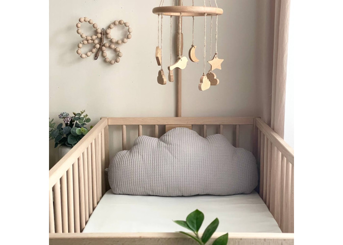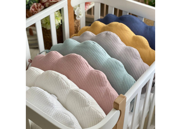 Красивая и оригинальная подушечка в форме облачка для детской кроватки.