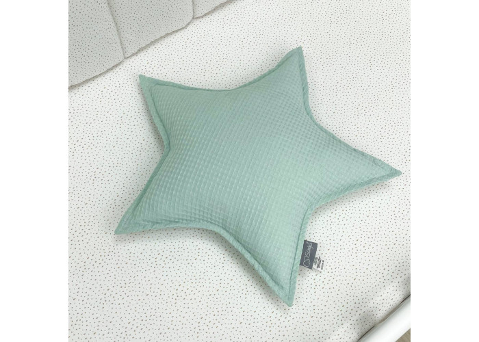 Красивая и оригинальная подушечка в форме звезды для детской кроватки. Благодаря подушечке, в кроватке создается уютная атмосфера, а также декор используют для фотосессий.