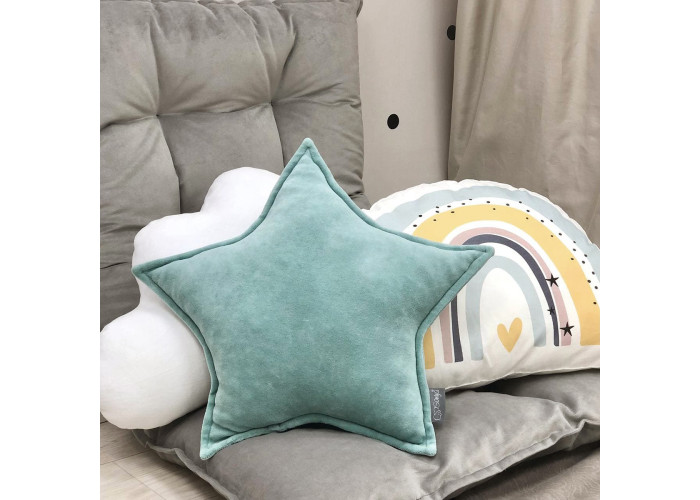 Красивая и оригинальная подушечка в форме звезды для детской кроватки.