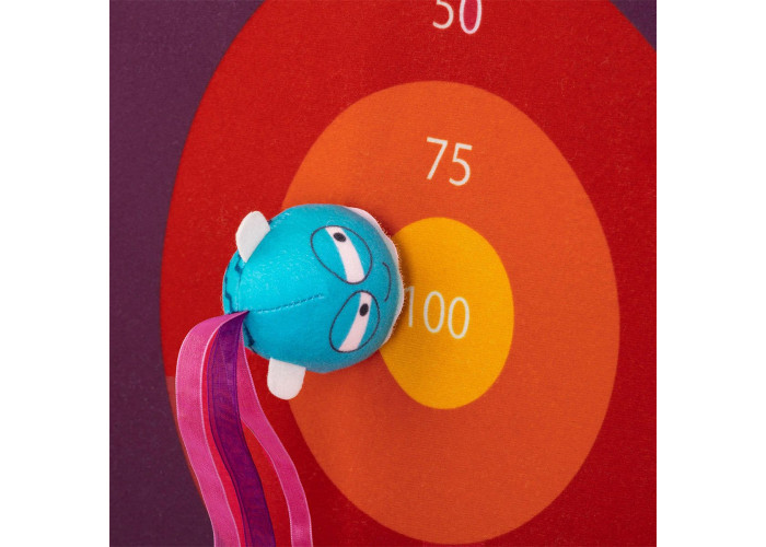 Розмір мішені: 43 cm х 51 cm х 7,6 cm, діаметр м'ячика: 5 cm.