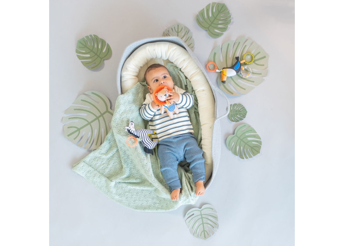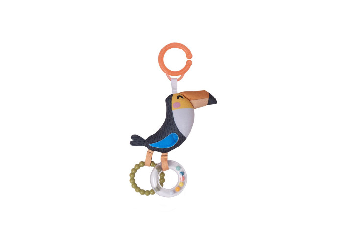 Іграшка пропонує безліч видів гри, адже крім м'якого тукана ще є пластикове фігурне кільце, яке можна гризти, та прозоре кільце з кольоровими намистинами всередині. Дзьоб Тукана шелестить!