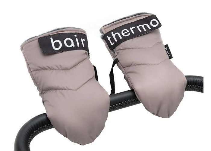 Рукавицы для рук Bair Thermo Mittens – полезный аксессуар для коляски, который согреет руки родителей во время морозов, и не даст осенней непогоде помешать прогулкам с ребенком. Простая и надежная система фиксации позволяет использовать ее не только с разными типами колясок, но и с санками.