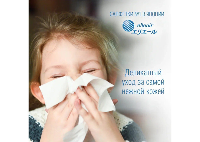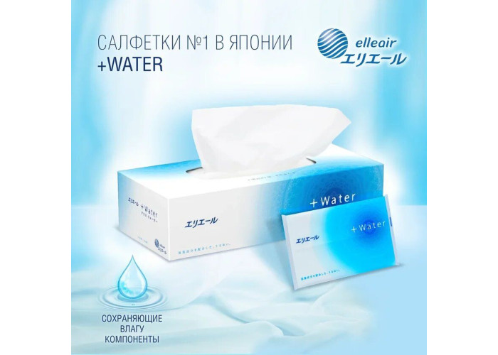 Салфетки бумажные увлажняющие ELLEAIR +WATER с глицерином и молекулами воды (в коробке, 180 шт)