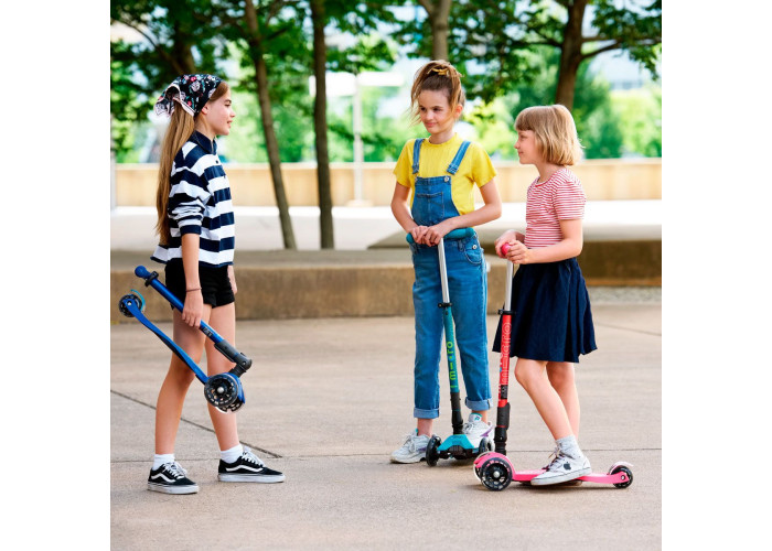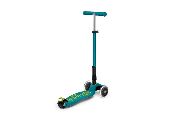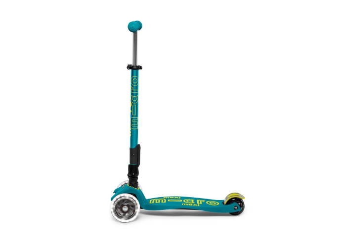 Самокат MICRO серии "MAXI DELUXE FOLDABLE LED" – ЗЕЛЕНЫЙ (складной, до 50 KG, 3-х колесный, свет)
