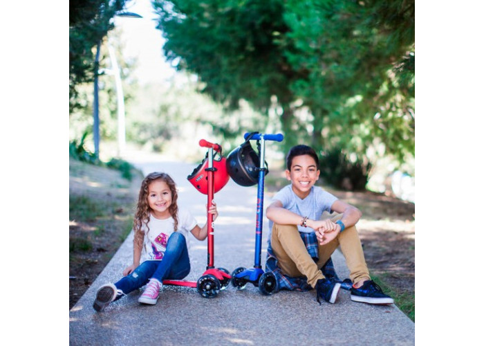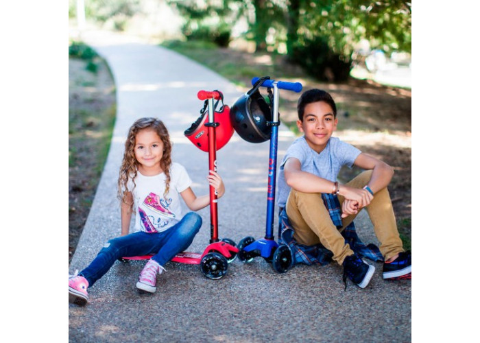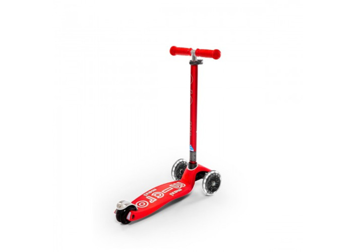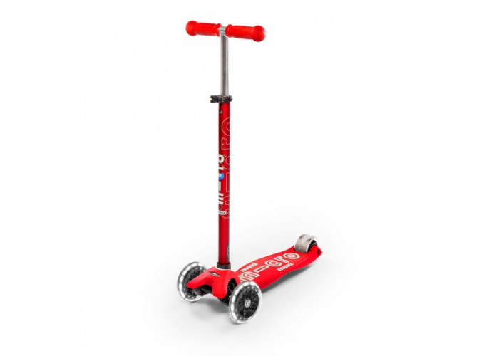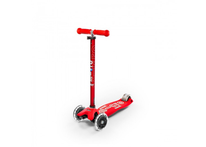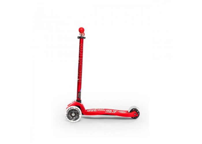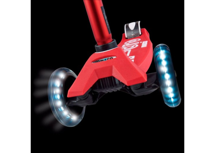 Самокат MICRO серии "MAXI DELUXE LED" – КРАСНЫЙ (до 50 KG, 3-х колесный, свет)