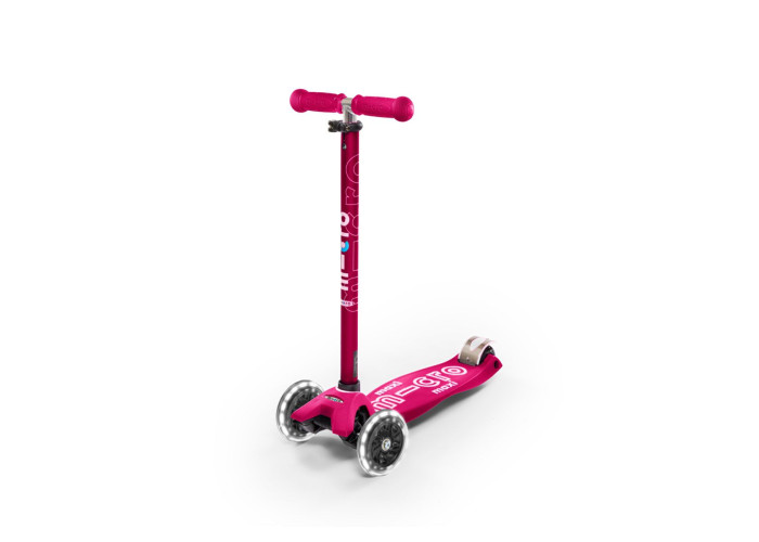 Самокат MICRO серии "MAXI DELUXE LED" – РОЗОВЫЙ (до 50 KG, 3-х колесный, свет)